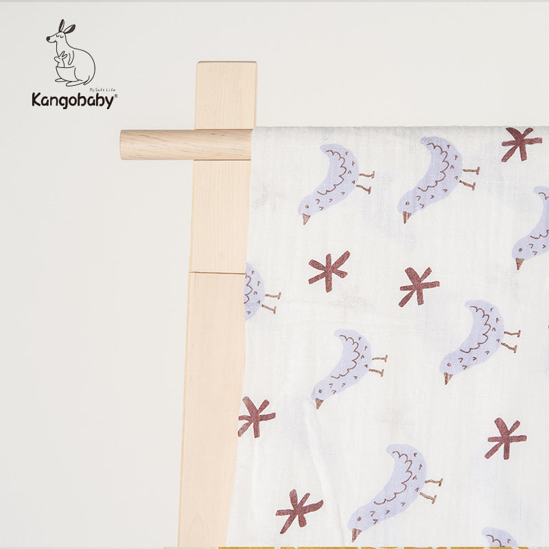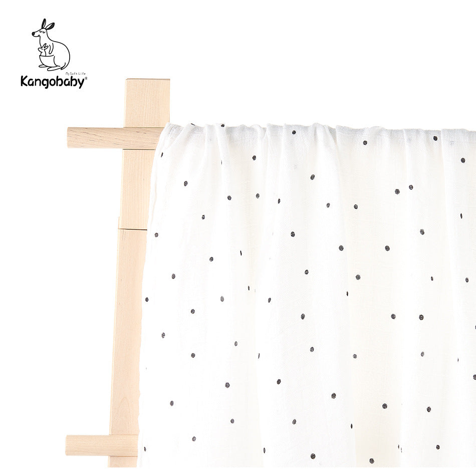 Kangobaby新款竹棉双层muslin婴儿抱毯襁褓巾70%竹+30%棉纱布浴巾