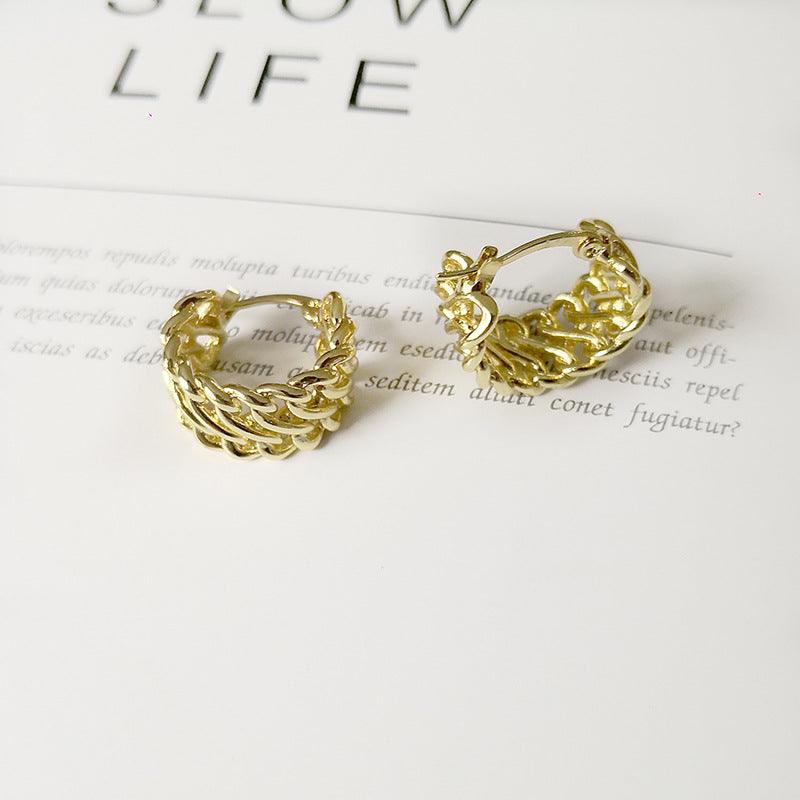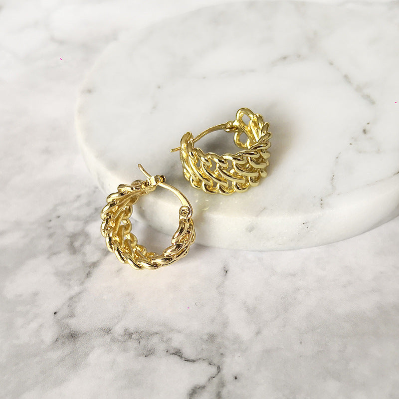 Women's golden semicircle chain braided earrings